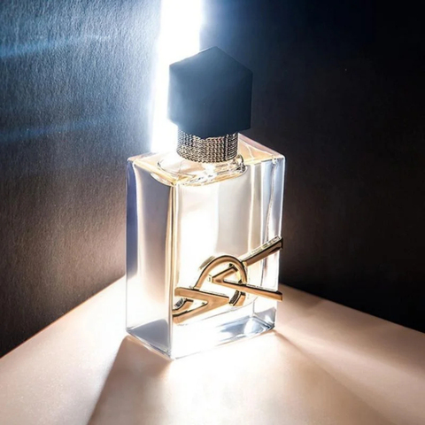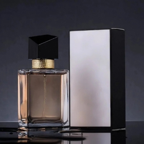 Perfume ámbar dorado, botella cuadrada clásica, fragancia elegante y lujosa para mujer
